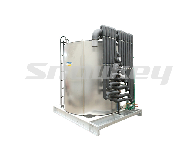 水順著制冰器內(nèi)壁流下的水,經(jīng)過(guò)制冰器底部的接水盤(pán)流入接水槽,再流入水箱,大面積的接水盤(pán)設(shè)計(jì)構(gòu)造,使片冰機(jī)底部不滴水,避免庫(kù)內(nèi)片冰結(jié)塊。